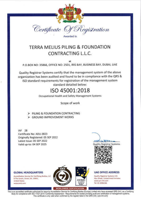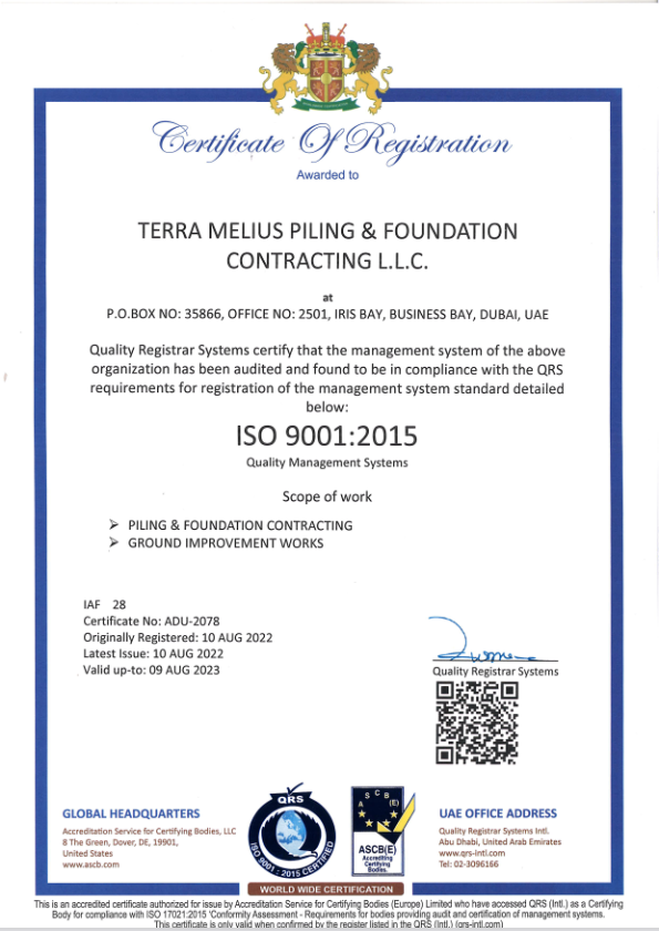 At Terra Melius, Quality comes before everything and anything. With this in mind, we have adopted rigorous and robust internal management controls and work procedures so that our services fulfill our client needs, without compromising on quality. We are fully committed to the issue of safety and health protection, the environmental compatibility, the profitability and the sustainability.